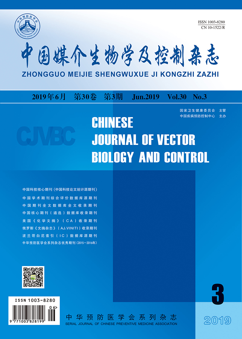 Objective To investigate the resistance status of Blattella germanica, Aedes albopictus, and Musca domestica to commonly used insecticides in Jiaxing, and to provide a scientific basis for the development of reasonable and effective prevention and control measures. Methods The residual film was used to determine the median knockdown time (KT50) of propoxur, beta-cypermethrin, dimethyl dichloro-vinyl phosphate (DDVP), deltamethrin, and acephate against B. germanica. The WHO standard test kits were used to measure the mortality of Ae. albopictus at diagnostic doses of propoxur, beta- cypermethrin, deltamethrin, permethrin, and malathion. Micro-topical application was used to determine the median lethal doses (LD50) of propoxur, beta-cypermethrin, DDVP, deltamethrin, and permethrin against M. domestica. Results Blattella germanica showed moderate resistance to deltamethrin and DDVP, with resistance ratios of 8.21 and 5.33, respectively, showed low resistance to beta-cypermethrin, with a resistance ratio of 4.31, and was sensitive to propoxur and acephate, with resistance ratios of 1.58 and 1.05, respectively. The mortality rates of Ae. albopictus to beta-cypermethrin, deltamethrin, and permethrin were 100%, 100%, and 98.67%, respectively, indicating that Ae. albopictus was sensitive to these insecticides. However, its mortality rates to malathion and propoxur were 97.33% and 90.67%, respectively, suggesting possible resistance. Musca domestica demonstrated moderate resistance to DDVP (resistance ratio:10.47), low resistance to deltamethrin (8.22) and permethrin (8.13), and sensitivity to propoxur and beta-cypermethrin. Conclusion As shown from the resistance criteria, B. germanica, Ae. albopictus, and M. domestica in Jiaxing have different degrees of resistance to commonly used insecticides. Therefore, surveillance of insecticide resistance should be highlighted for rational use of insecticides.