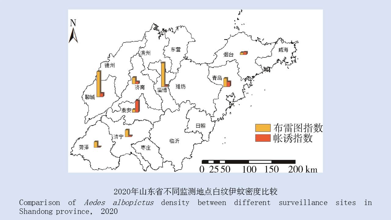 目的 了解江苏省盐城市蚊虫构成、种群密度及季节消长规律,为制定有效的蚊虫防制措施、蚊媒传染病预测预警提供科学依据。方法 2016-2023年采用诱蚊灯法,在盐城市的城镇居民区、公园、医院、农户和牲畜棚5类生境开展监测,分析蚊种构成、种群密度以及季节消长趋势,用SPSS 20.0软件对不同年份、不同生境的蚊虫构成比进行χ2检验,对不同年份、不同蚊种、不同生境的蚊密度进行方差分析,对不同年份、不同蚊种的蚊密度分别进行方差分析趋势检验。结果 2016-2023年盐城市共捕获雌蚊132 432只,平均蚊密度为13.59只/(灯·夜),蚊虫种类构成中淡色/致倦库蚊、中华按蚊、三带喙库蚊居前3位,分别占捕获总数的68.62%、13.95%和12.09%,蚊种构成比在不同年份间差异有统计学意义(χ2=9 026.399,P<0.001),不同蚊种的蚊密度差异和变化趋势差异均有统计学意义(均P<0.001);不同生境间牲畜棚的蚊密度最高,达28.37只/(灯·夜),医院最低,为7.84只/(灯·夜),不同生境间蚊种构成比和蚊密度差异均有统计学意义(均P<0.001),不同蚊种、不同生境的蚊密度季节变化曲线总体均呈单峰分布,高峰期为6-9月。结论 淡色/致倦库蚊、中华按蚊和三带喙库蚊是盐城市的优势蚊种,6-9月为控制蚊虫的关键时期,牲畜棚和农户为蚊虫的重点控制场所。应根据蚊虫种群分布、密度变化及季节消长规律采取针对性的蚊媒控制措施。