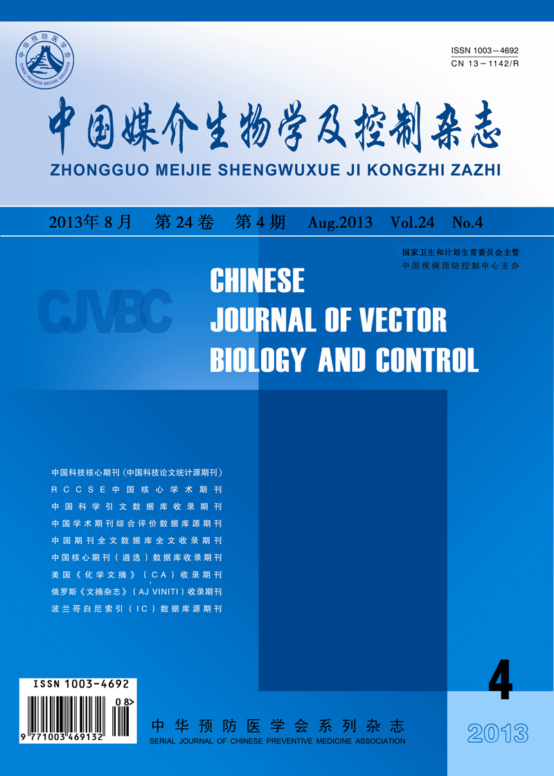 目的 调查石家庄市区蚊幼虫孳生情况,为蚊虫防制提供科学依据。方法 于2011年7-8月对小型积水和容器积水采用直接观察法,大中型水体采用目测法结合捞勺法调查孳生情况;同时采集阳性积水或水体中的蚊幼虫带回实验室鉴定。结果 大中型水体广场喷泉池、公园景观水域(人工湖)、民心河(环城人工河),平均阳性率为10.94%;各类小型积水和容器积水1120处,蚊幼虫孳生阳性221处,阳性率在6.35%~38.46%之间,平均阳性率为19.73%。蚊幼虫孳生优势种群为白纹伊蚊和淡色库蚊,其中白纹伊蚊占42.74%,淡色库蚊占35.55%。结论 石家庄市不同水体蚊虫孳生各具特点,为蚊虫防制和治理策略制定提供了依据。