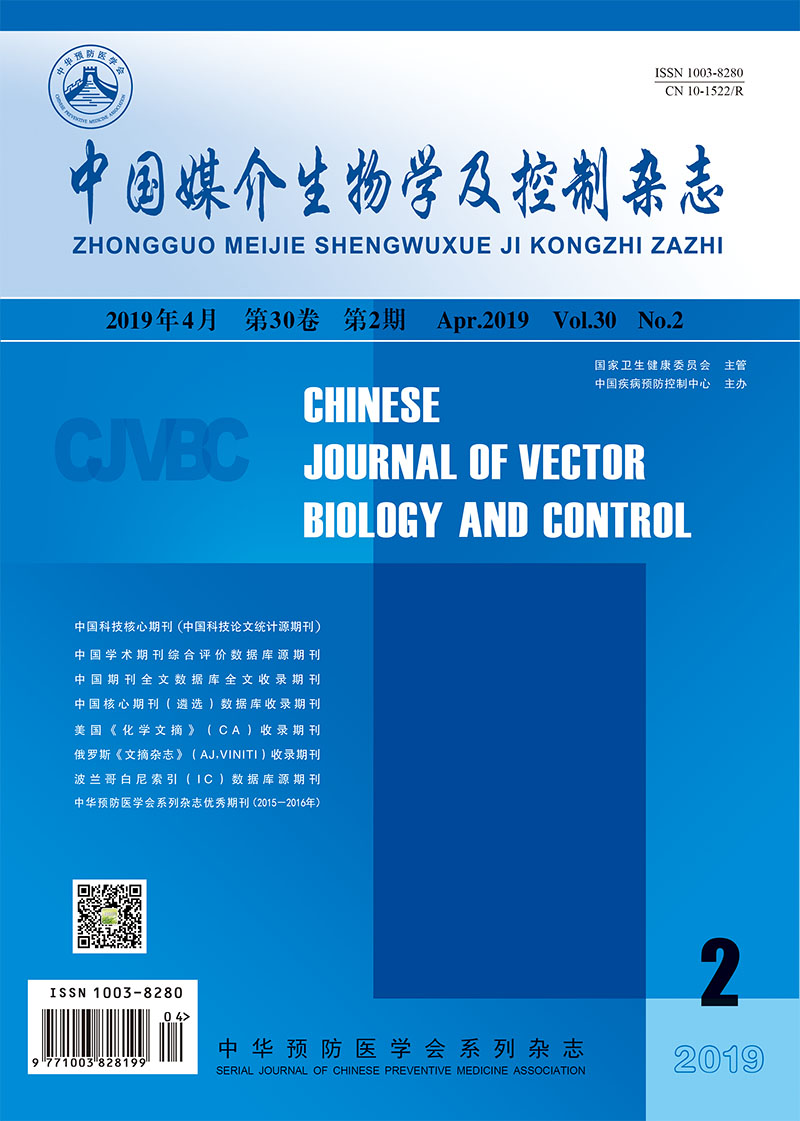 目的 了解山西省农户常见病媒生物鼠类、蝇类、蚊虫、蜚蠊侵害状况,为评估农村环境健康危害因素提供依据。方法 2015-2017年每年的8月对山西省36个县各5个乡镇20个村720户农户进行鼠类、蝇类、蚊虫、蜚蠊侵害状况调查和数据统计分析。采用单因素方差分析病媒生物侵害的时空差异。结果 2015-2017年山西省农户鼠类、蝇类、蚊类、蜚蠊侵害率年度间差异无统计学意义。3年间,全省农户鼠类平均侵害率为31.75%,以大同市侵害率最高为61.00%,其次为朔州市(56.56%),长治市侵害率最低(14.89%);大同、朔州及吕梁等8个市鼠类侵害率差异有统计学意义(F=4.185,P=0.002)。全省农户蝇类平均侵害率为78.31%,以大同市侵害率最高为95.44%,其次为朔州市(91.78%),长治市最低(64.22%),大同及吕梁等6个市蝇类侵害率差异有统计学意义(F=2.954,P<0.05)。全省农户蚊类平均侵害率为12.86%,以晋中市侵害率最高为23.44%,其次为太原(20.58%)和朔州市(20.44%),忻州市最低(6.44%),侵害率较高的晋中、太原、朔州市与侵害率较低的忻州、吕梁、长治、晋城市间差异有统计学意义(F=2.519,P=0.034)。全省农户蜚蠊平均侵害率为2.19%,以太原市侵害率最高为6.83%,其次为大同(2.67%)和忻州市(2.67%),运城市最低(0.08%),太原市与其他10个市蜚蠊侵害率差异有统计学意义(F=2.068,P<0.05)。结论 山西省农户鼠类和蝇类侵害较重,蚊虫侵害不容忽视,蜚蠊侵害尚不足为害。改善农村人居环境,提高居民防病意识,改善其卫生习惯,加强病媒生物防控管理是防范病媒生物性疾病传播的必要措施。